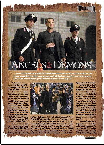 - เคยไขปริศนาที่สั่นสะเทือนโลกคาธอลิคมาแล้ว ครั้งนี้ ทอม แฮงค์จะกลับมาทำให้ศรัทธาสั่นคลอนอีก ครั้งกับบทบาทโรเบิร์ต แลงดอนใน Angels & Demons - แกล้งดารามาแล้วทั่วฟ้าเมืองไทย คราวนี้ถึงคราวที่ สาระแนตัวดี จะโกอินเตอร์ไปกลั่นแกล้งสาวๆ Baby V.O.X. Rev. กันบ้าง - บทสัมภาษณ์ท่านนายกสมาคมผู้กำกับภาพยนตร์แห่งประเทศไทย - Movietime รำลึก 12 ปีแห่งความผูกพัน